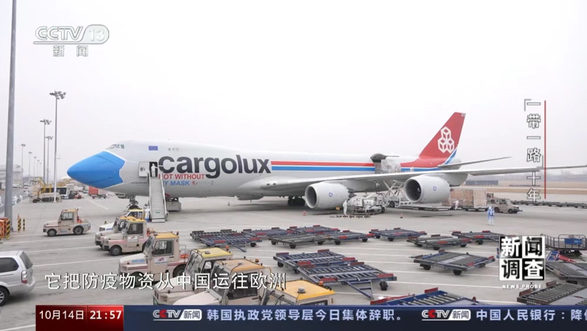 隨后,央視《新聞?wù){(diào)查》于10月14日播出“一帶一路十年 雙向奔赴 絲路同行”。報(bào)道再次把鏡頭給到河南,同樣選用了鄭盧“空中絲綢之路”案例。理查德·福森在節(jié)目中對雙方的合作成績給予肯定,他介紹說,通過這條鄭州到盧森堡的航線,盧森堡貨航能夠輻射整個(gè)歐洲,可以把貨物送到歐洲的125個(gè)站點(diǎn);同時(shí)也可以從新鄭國際機(jī)場飛往美國芝加哥和其他的分撥中心,從那里通過貨車陸運(yùn)至少可以去往美國的200多個(gè)站點(diǎn)。而湯姆·維斯格伯認(rèn)為,如果沒有河南,盧森堡貨航很難為客戶提供完美的方案。報(bào)道回顧了豫盧攜手抗疫、共同推動可持續(xù)航空燃料加注和文化融通等事例,并認(rèn)為,從2013年河南航投與盧森堡貨航合作以來,雙方攜手同行,帶來的不僅僅是利潤,還有對彼此堅(jiān)定的信任。