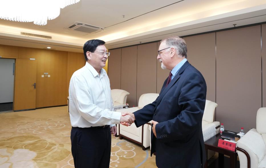 湯普森介紹了自己此行到河南尤其是參觀河南航投集團(tuán)航空制造產(chǎn)業(yè)園、河南航投航空培訓(xùn)中心的情形。他表示,盧森堡貨航是當(dāng)?shù)胤浅V匾钠髽I(yè),河南航投收購(gòu)盧森堡貨航35%的股權(quán)在當(dāng)?shù)厥寝Z動(dòng)新聞,《編年史》自那時(shí)起就一直關(guān)注著雙方的合作。湯普森見(jiàn)證了鄭盧“空中絲綢之路”貨運(yùn)量不斷增長(zhǎng)、客運(yùn)航線開通和文物雙向交流等重要突破,也曾參加了盧森堡首屆龍舟節(jié)并樂(lè)見(jiàn)河南航投和盧森堡貨航同時(shí)組隊(duì)參賽。隨后,湯普森就今年6月中豫航空集團(tuán)在盧森堡發(fā)債、與當(dāng)?shù)仄髽I(yè)簽約等,詳細(xì)了解了今后雙方的合作思路。湯普森希望中豫航空集團(tuán)與盧森堡當(dāng)?shù)仄髽I(yè)的合作不斷取得新成效,并通過(guò)體育文化交流等增進(jìn)兩地友誼。談及此次來(lái)豫,湯普森很開心,直言自己此行收獲頗豐,不僅了解了河南厚重的歷史文化底蘊(yùn),也在行程中感受到河南的開放和包容,將把所見(jiàn)所聞所感帶回去,講好豫盧共建“空中絲綢之路”的友好故事。