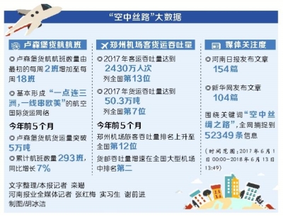 2017年6月14日,國(guó)家主席習(xí)近平在會(huì)見(jiàn)盧森堡首相貝泰爾時(shí),明確提出要深化雙方在“一帶一路”建設(shè)框架內(nèi)金融、產(chǎn)能等合作,中方支持建設(shè)鄭州—盧森堡“空中絲綢之路”。
