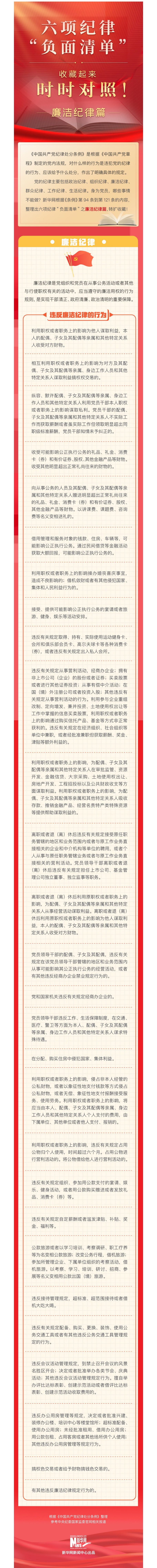 【學(xué)條例 守黨紀(jì)】六項(xiàng)紀(jì)律“負(fù)面清單” | 廉潔紀(jì)律篇