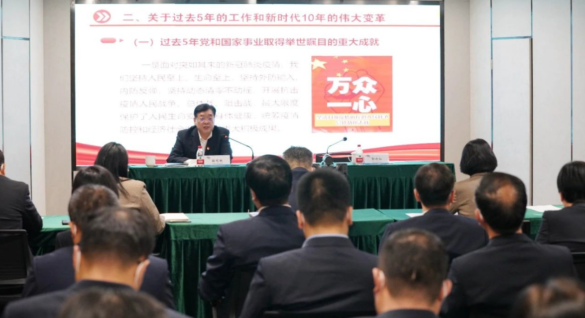 會(huì)上,張明超圍繞黨的二十大的主題和主要成果、過(guò)去5年的工作和新時(shí)代10年的偉大變革、馬克思主義中國(guó)化時(shí)代化、中國(guó)式現(xiàn)代化、全面建設(shè)社會(huì)主義現(xiàn)代化國(guó)家的目標(biāo)任務(wù)、堅(jiān)持黨的全面領(lǐng)導(dǎo)和全面從嚴(yán)治黨等方面,對(duì)黨的二十大精神進(jìn)行了系統(tǒng)宣講,并對(duì)學(xué)習(xí)領(lǐng)會(huì)習(xí)近平總書(shū)記視察延安和安陽(yáng)重要講話(huà)精神作了深入闡釋。