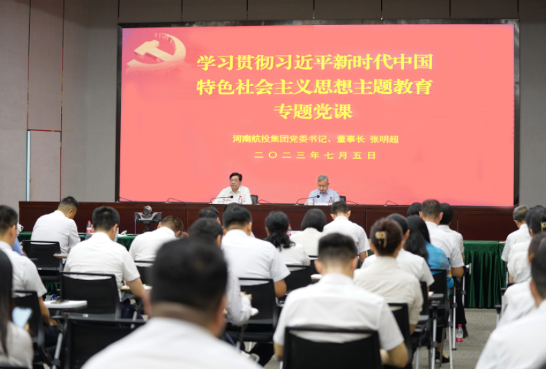 7月5日,河南航投集團(tuán)黨委書記、董事長張明超以“牢記囑托 不負(fù)使命 勇建新功”為題,為集團(tuán)全體黨員講專題黨課;總經(jīng)理、黨委副書記、副董事長李東棵主持。集團(tuán)領(lǐng)導(dǎo)班子成員、總部管理人員代表及各子公司主要負(fù)責(zé)人等80余人在主會(huì)場(chǎng)參學(xué)。黨課以“主會(huì)場(chǎng)+視頻分會(huì)場(chǎng)”方式進(jìn)行。