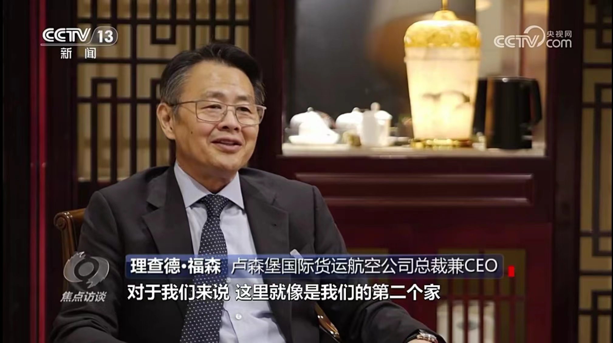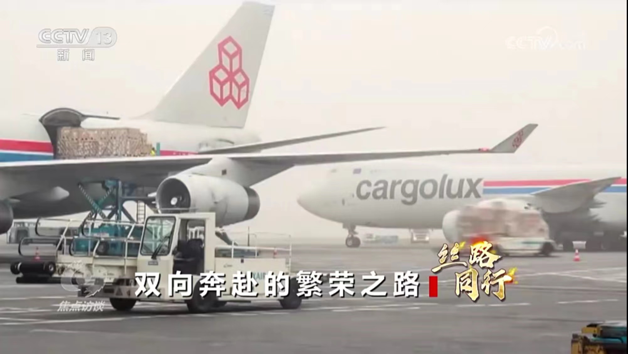 10月11日,央視《焦點(diǎn)訪談》播發(fā)系列報(bào)道“絲路同行”第一集——雙向奔赴的繁榮之路。報(bào)道中說,“一帶一路”倡議的提出,讓河南明確了突破區(qū)位限制、向藍(lán)天要效益的開放思路。通過采訪河南航投集團(tuán)黨委書記、董事長張明超和盧森堡貨航董事會主席湯姆·維斯格伯、總裁兼CEO理查德·福森,報(bào)道回顧了鄭盧“空中絲綢之路”十年探索實(shí)踐和豫盧之間的友好情誼。節(jié)目評論道:“(河南航投與盧森堡貨航)之間早已超越了生意伙伴這一簡單的關(guān)系,多年的合作讓鄭州與盧森堡兩個(gè)航空樞紐之間的互聯(lián)互通真正實(shí)現(xiàn)了彼此雙方互利共贏和美美與共。這一切都在詮釋著‘一帶一路’倡議的核心要義?!?