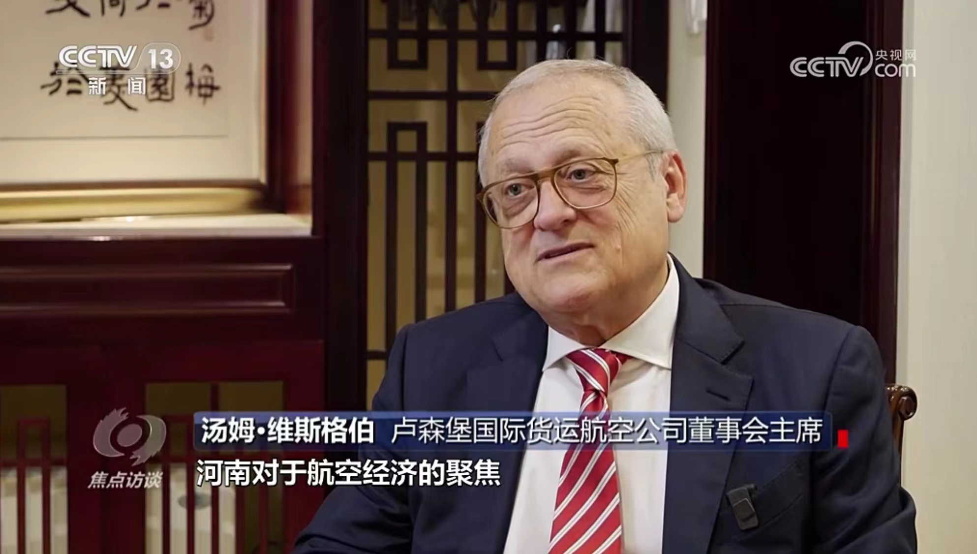 隨后,央視《新聞?wù){(diào)查》于10月14日播出“一帶一路十年 雙向奔赴 絲路同行”。報(bào)道再次把鏡頭給到河南,同樣選用了鄭盧“空中絲綢之路”案例。理查德·福森在節(jié)目中對雙方的合作成績給予肯定,他介紹說,通過這條鄭州到盧森堡的航線,盧森堡貨航能夠輻射整個(gè)歐洲,可以把貨物送到歐洲的125個(gè)站點(diǎn);同時(shí)也可以從新鄭國際機(jī)場飛往美國芝加哥和其他的分撥中心,從那里通過貨車陸運(yùn)至少可以去往美國的200多個(gè)站點(diǎn)。而湯姆·維斯格伯認(rèn)為,如果沒有河南,盧森堡貨航很難為客戶提供完美的方案。報(bào)道回顧了豫盧攜手抗疫、共同推動可持續(xù)航空燃料加注和文化融通等事例,并認(rèn)為,從2013年河南航投與盧森堡貨航合作以來,雙方攜手同行,帶來的不僅僅是利潤,還有對彼此堅(jiān)定的信任。