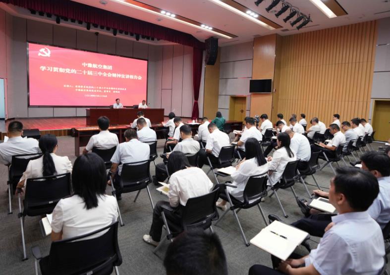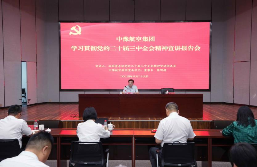 8月29日,按照省委和省政府國資委黨委部署,中豫航空集團舉行學習貫徹黨的二十屆三中全會精神宣講報告會。省國資系統(tǒng)宣講團成員,中豫航空集團黨委書記、董事長張明超作宣講報告,黨委副書記、總經(jīng)理、副董事長柳建民主持會議,集團領(lǐng)導(dǎo)班子在鄭成員、中層管理人員、青年員工代表約300人參會。