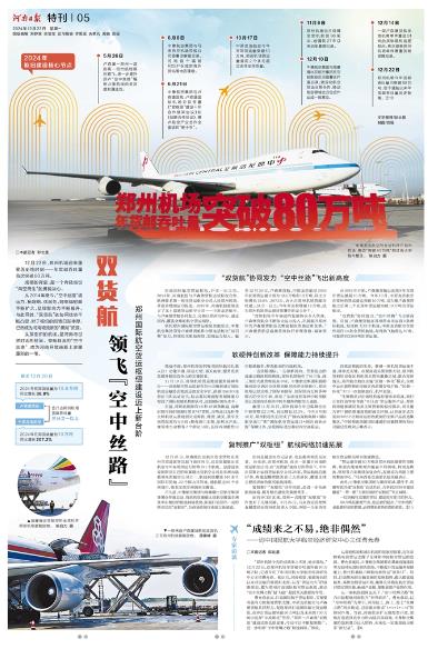 依托鄭州國際航空貨運(yùn)樞紐功能定位,中豫航空集團(tuán)引導(dǎo)盧森堡貨航和中原龍浩航空“雙引擎”發(fā)力,持續(xù)優(yōu)化航線網(wǎng)絡(luò)、加強(qiáng)運(yùn)力投入。截至12月20日,盧森堡貨航、中原龍浩航空2024年在鄭貨運(yùn)量分別為13.6萬噸和13萬噸,同比分別增長38.8%、207.2%,合計占鄭州機(jī)場貨郵吞吐量三分之一以上;今年共實現(xiàn)增量12萬噸,成為鄭州機(jī)場貨運(yùn)量持續(xù)攀升的龍頭骨干。