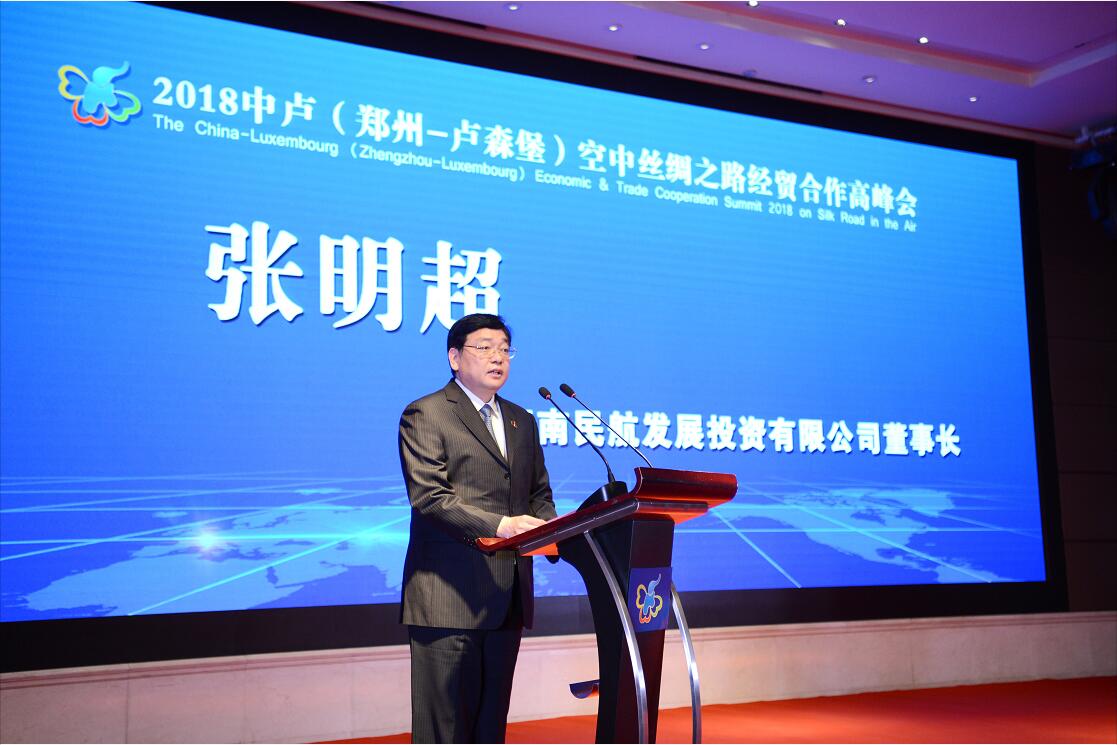 4月17日,2018中盧(鄭州—盧森堡)“空中絲綢之路”經(jīng)貿(mào)合作高峰會在鄭州舉行,來自河南和盧森堡兩地的政府官員、企業(yè)代表、專家學(xué)者碰撞思想火花,凝聚智慧力量。河南航投黨委書記、董事長張明超出席峰會并發(fā)言。
