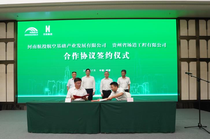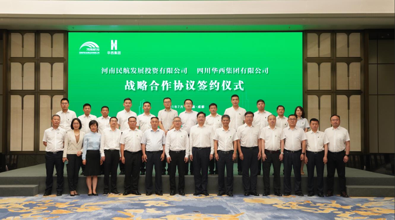 7月16日,河南民航發(fā)展投資有限公司(簡稱河南航投)與四川華西集團(tuán)有限公司(簡稱四川華西)在成都舉行了簡短而熱烈的簽約儀式,兩家跨省國企約定,在民航產(chǎn)業(yè)展開全面合作。河南航投黨委書記、董事長張明超,黨委副書記、總經(jīng)理、副董事長劉建葆,四川華西黨委書記、董事長楊斌,黨委副書記、總經(jīng)理、副董事長馬林出席。張明超、楊斌分別致辭,劉建葆、馬林代表雙方簽訂《戰(zhàn)略合作協(xié)議》,河南航投基礎(chǔ)產(chǎn)業(yè)公司董事長趙楠和貴州場道公司執(zhí)行董事劉國呈代表子公司簽訂《合資合作協(xié)議》。